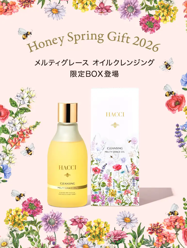 アイテム一覧 UVコレクション ホワイトデーギフト ボディケア インナーケア スキンケア はちみつ・スイーツ GIFT 定期便 全てのアイテムはこちら 新着アイテム 国産 桜はちみつセット ¥5,076(税込) 国産 桜はちみつ ¥2,808(税込) Spring Bathセット(ピンク) SOLDOUT ¥12,320(税込) Spring Bathセット(パープル) ¥12,320(税込) ブライトC セラムUV 【ディズニー】 ¥7,700(税込) 日焼け止めミスト D 【ディズニー】 ¥4,950(税込) セラムイン UV ボディクリーム 【ディズニー】 ¥7,040(税込) 日焼け止めミスト DI 【ディズニー】 ¥8,250(税込) モイスチャーボディミルク UV 【ディズニー】 ¥6,820(税込) LONG SELLER ハニーコラーゲン(3本・9本) ¥5,940(税込) フェイスオイル エスケーピオン ¥15,400(税込) はちみつ洗顔石けん ¥5,940(税込) ボディウォッシュ BEE HUG ¥6,600(税込) シートマスク ¥2,420(税込) RANKING ボディウォッシュ BEE HUG ¥6,600(税込) メルティグレース オイルクレンジング ¥7,370(税込) フェイスオイル エスケーピオン ¥15,400(税込) おすすめギフト 国産 桜はちみつセット ¥5,076(税込) Spring Bathセット(パープル) ¥12,320(税込) Spring Bathセット(ピンク) SOLDOUT ¥12,320(税込) 【春限定BOX】ボディウォッシュ BEE HUG ¥6,600(税込) 【ギフトBOX】ボディウォッシュ BEE HUG ¥6,600(税込) プティ ハニーショコラ バッグ ¥3,240(税込) GIFT 大切な人へプレゼント ご褒美ギフト LINEでギフトを贈る 【メールやLINEで気軽にプレゼント】 贈るお相手の住所を知らなくても、メールやLINEなどのSNSで気軽にギフトを贈ることができます。 詳しく見る 定期便 「定期商品一覧」はこちら NEWS 2026/3/6 採用情報のお知らせ 2026/2/15 UV COLLECTION 発売開始のお知らせ 2025/12/1 【発売開始】マカロンのように可愛く、とろけるように上質なバスソルト 2025/12/1 チョコレートコレクションにギフトおすすめ商品を追加発売 2025/11/19 @cosme ベストコスメアワード 2025 ベストボディソープ 第1位 受賞! もっと見る ミツバチが運ぶ、甘く濃厚なはちみつ。 それは私たちに届く、幸せの連鎖のはじまり 肌や髪を潤す力。からだと心を温める力。 HACCIは、はちみつがもつ美容の力にこだわり続けます。いつもずっと本物志向、そこにちょっとの遊び心を。 100年後も愛され続ける“本当に良いもの”を追究し、今日も世界中に笑顔の花を咲かせます。 詳しく見る