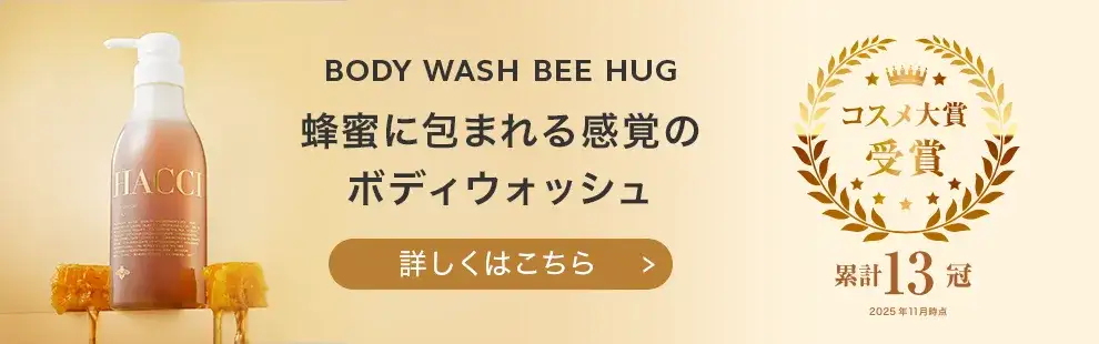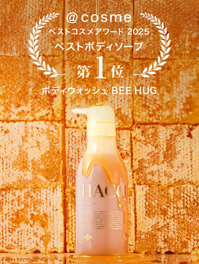 アイテム一覧 クリスマスコフレ チョコレートコレクション ボディケア インナーケア スキンケア はちみつ・スイーツ GIFT UVコレクション 定期便 全てのアイテムはこちら 新着アイテム アマンドショコラ(アーモンドチョコ) ¥2,646(税込) ペカンショコラほうじ茶(ペカンナッツチョコ) ¥2,646(税込) Ornament Honey(オーナメント ハニー) ¥4,536(税込) Ornament Snow(オーナメント スノー) ¥14,300(税込) ボディクリーム インペリアルブルー ¥5,280(税込) ボディウォッシュ BEE HUG インペリアルブルー ¥6,600(税込) Imperial Eve(インペリアル イヴ) ¥23,100(税込) 【ギフトBOX】ボディウォッシュ BEE HUG ¥6,600(税込) LONG SELLER フェイスオイル エスケーピオン ¥15,400(税込) ボディウォッシュ BEE HUG ¥6,600(税込) はちみつ洗顔石けん ¥5,940(税込) ハニーコラーゲン(3本・9本) ¥5,940(税込) シートマスク ¥2,420(税込) RANKING Imperial Eve(インペリアル イヴ) ¥23,100(税込) メルティグレース オイルクレンジング ¥7,370(税込) フェイスオイル エスケーピオン ¥15,400(税込) おすすめギフト 【ギフトBOX】ボディウォッシュ BEE HUG ¥6,600(税込) Ornament Eve(オーナメント イヴ) ¥5,940(税込) ペカンショコラ紫芋(ペカンナッツチョコ) ¥2,646(税込) ペカンショコラほうじ茶(ペカンナッツチョコ) ¥2,646(税込) 花嫁準備セット ¥14,300(税込) 奉納はちみつ 国産 神乃雫 ¥8,640(税込) GIFT 大切な人へプレゼント ご褒美ギフト LINEでギフトを贈る 【メールやLINEで気軽にプレゼント】 贈るお相手の住所を知らなくても、メールやLINEなどのSNSで気軽にギフトを贈ることができます。 詳しく見る 定期便 「定期商品一覧」はこちら NEWS 2025/11/19 @cosme ベストコスメアワード 2025 ベストボディソープ 第1位 受賞! 2025/11/15 UVコレクション2026 発表! 2025/11/14 【発売開始】チョコレートコレクション2026 2025/10/8 銀座三越 リニューアルオープンのお知らせ 2025/10/01 2025ホリデーコレクション 予約受付開始 もっと見る ミツバチが運ぶ、甘く濃厚なはちみつ。 それは私たちに届く、幸せの連鎖のはじまり 肌や髪を潤す力。からだと心を温める力。 HACCIは、はちみつがもつ美容の力にこだわり続けます。いつもずっと本物志向、そこにちょっとの遊び心を。 100年後も愛され続ける“本当に良いもの”を追究し、今日も世界中に笑顔の花を咲かせます。 詳しく見る