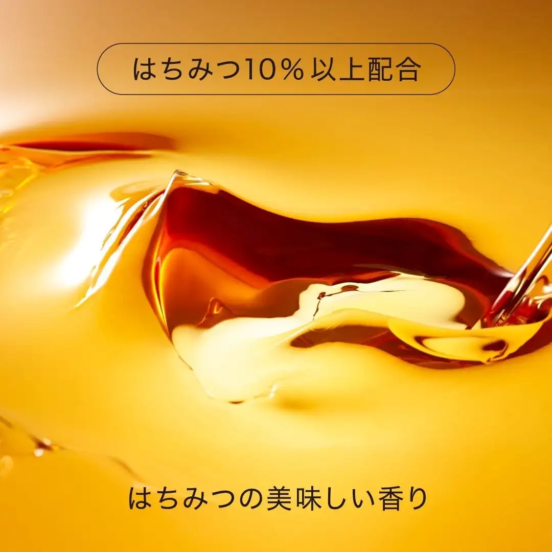 成分:水、ハチミツ、ラウロアンホ酢酸Na、ラウロイルメチルアラニンNa、DPG、コカミドメチルMEA、グリコシルトレハロース、ココイルメチルタウリンNa、ラウリルグリコールカルボン酸Na、加水分解水添デンプン、ジオレイン酸PEG-120メチルグルコース、クエン酸、安息香酸Na、香料、フェノキシエタノール、ポリクオタニウム-10、ポリクオタニウム-7、EDTA-2Na、カラメル、グアー