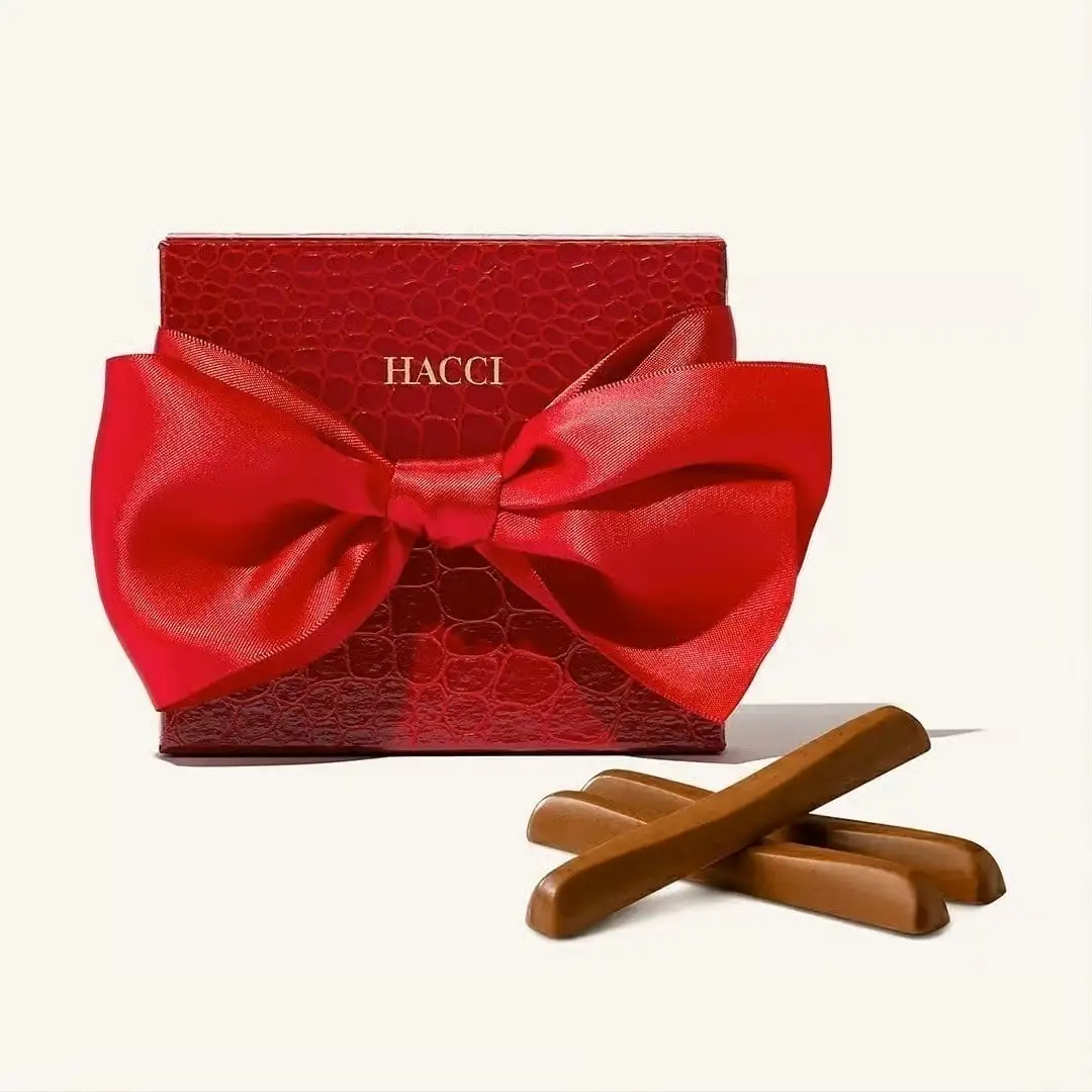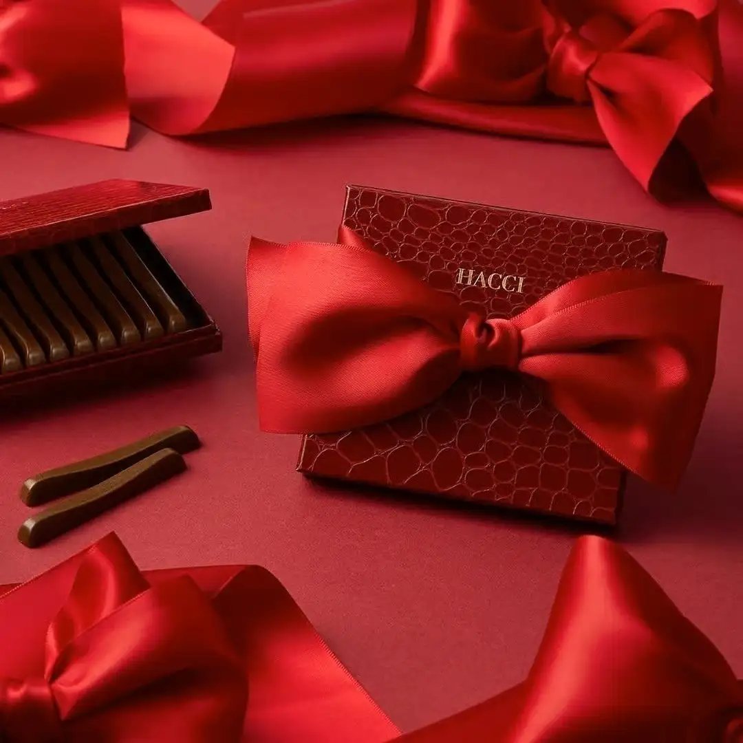 上品でエレガントなクロコ柄のBOXに、深紅の大きなリボン。
