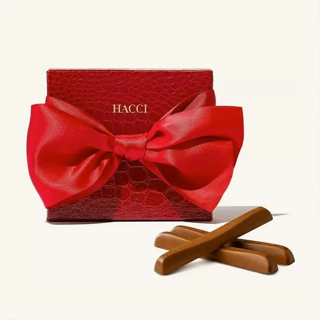 上品でエレガントなクロコ柄のBOXに、深紅の大きなリボン