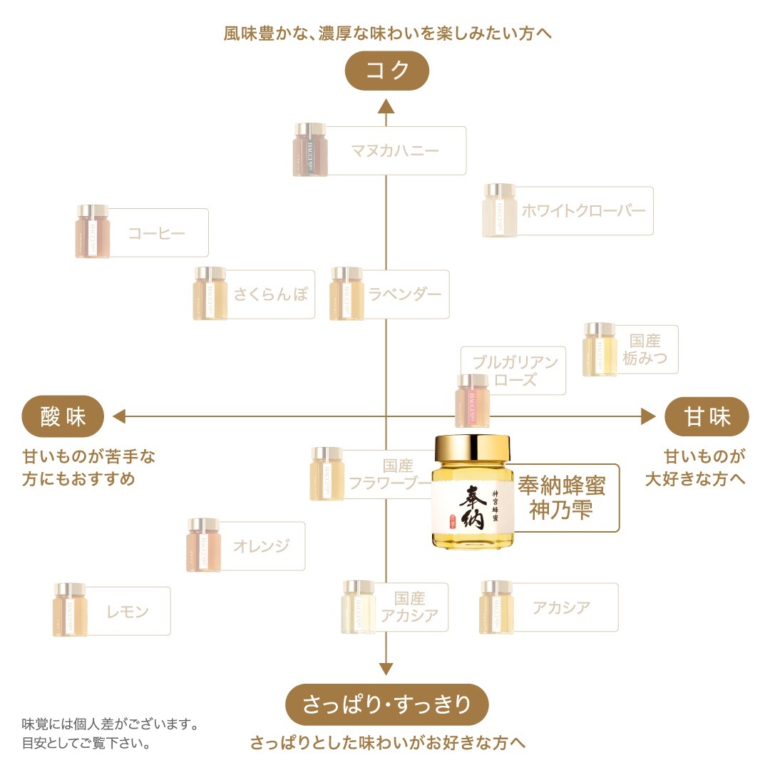 伊勢神宮奉納はちみつ(国産 神乃雫) 日本の最も尊い神”天照大御神様”をお祀りし、日本人の心のふるさと、として親しまれる聖地「伊勢神宮」。伊勢神宮の恒例祭典の中で、五穀豊穣を願う最も重要な祭祀である神嘗祭(かんなめさい)に、その年に採蜜され厳選したはちみつを奉納する名誉を拝しております。 伊勢神宮との深い絆により荘厳な祭祀に参列し、一年、無事に採蜜できたことを神様への心からの感謝と、はちみつとの共存共生の願いをこめて、毎年最上の逸品を奉納してまいります。 奉納はちみつ 国産 神乃雫 商品番号:TH59135HA ¥8,640(税込) 熨斗を希望する 不要 カートに追加する お気に入りに追加する この商品に関する問い合わせ 伊勢神宮奉納はちみつ(国産 神乃雫) 日本の最も尊い神”天照大御神様”をお祀りし、日本人の心のふるさと、として親しまれる聖地「伊勢神宮」。伊勢神宮の恒例祭典の中で、五穀豊穣を願う最も重要な祭祀である神嘗祭(かんなめさい)に、その年に採蜜され厳選したはちみつを奉納する名誉を拝しております。 伊勢神宮との深い絆により荘厳な祭祀に参列し、一年、無事に採蜜できたことを神様への心からの感謝と、はちみつとの共存共生の願いをこめて、毎年最上の逸品を奉納してまいります。 数量