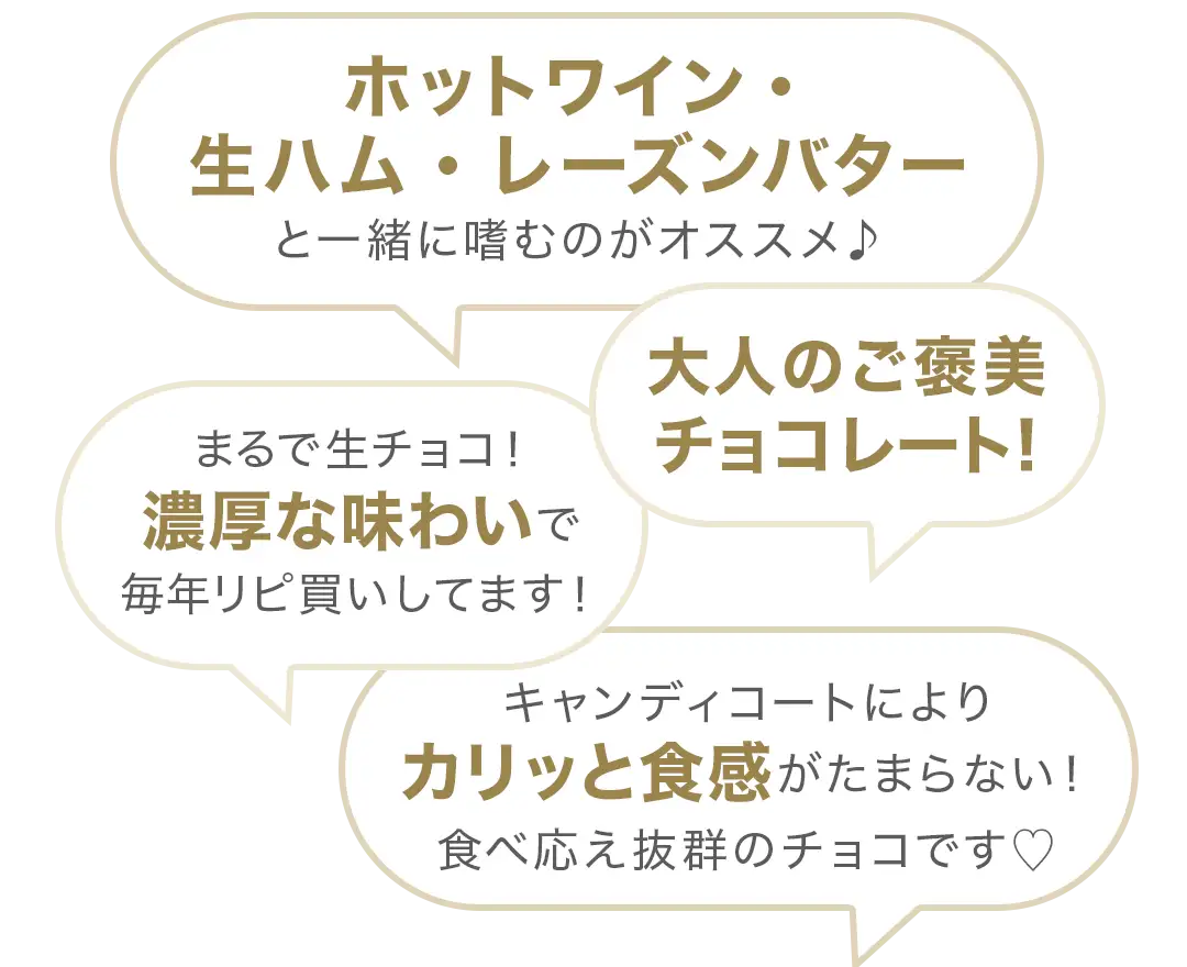 キャンディコートされたほろ苦いアーモンドを濃厚なベルギー産チョコレートで包みココアパウダーでコーティング。カリッとした食感がアクセント!