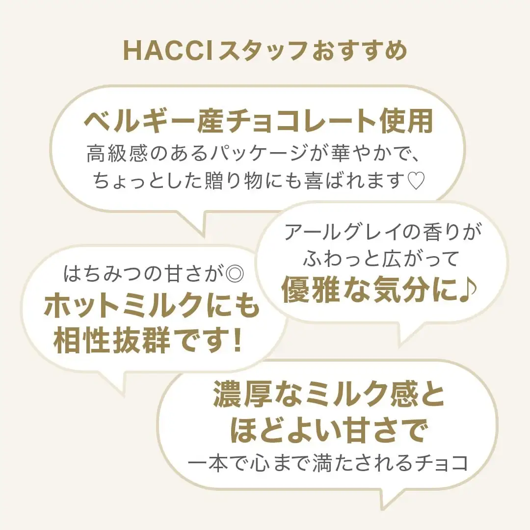 優雅な気分のアールグレイが香るミルクチョコレートにはちみつパウダーを練り込み、芳醇な香りとやさしい甘さを閉じ込めた、なめらかな口どけのチョコレートです。大切な方へのギフトにもふさわしい一品。