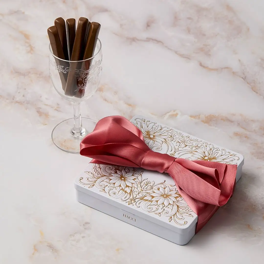 昨年好評を博した、白地に繊細で美しい花模様が浮かび上がるデザイン缶に、大きなリボンを添えて、より華やかに仕上げました。