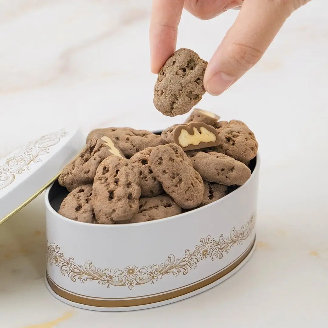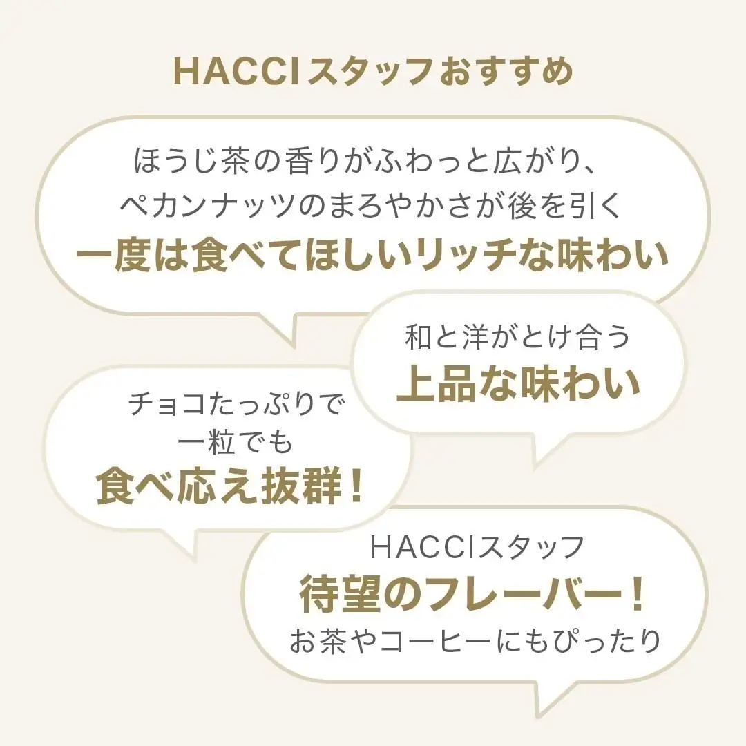 原材料名:チョコレート(国内製造、ベルギー製造)、ペカンナッツ、ココアバター、ほうじ茶パウダー、粉糖、粉末はちみつ/乳化剤、香料、(一部に乳成分・大豆を含む)