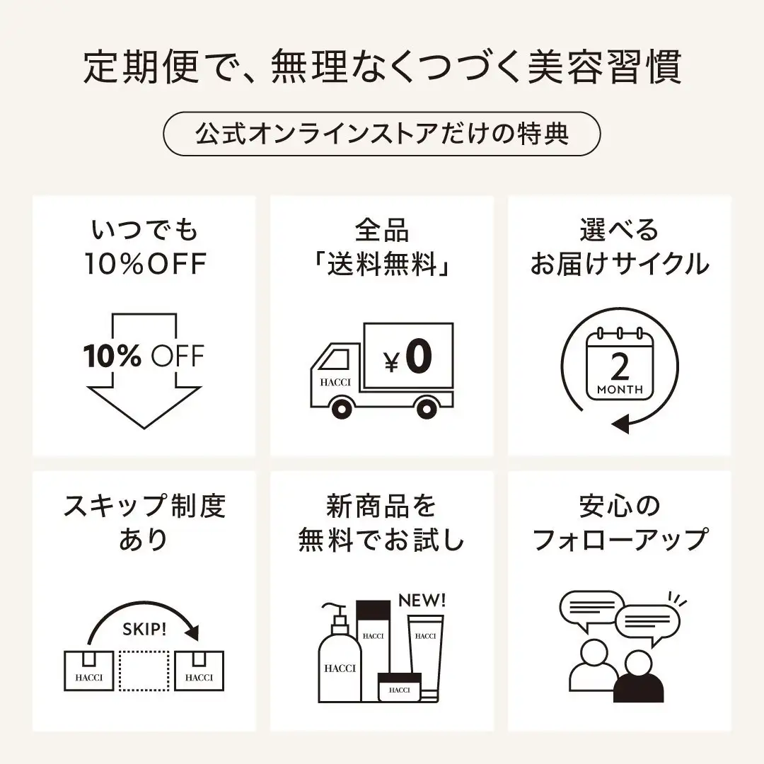 商品説明 成分・内容量 内容量:32mL 成分:ヒマワリ種子油、コムギ胚芽油、アルガニアスピノサ核油、香料、ヒマシ油、ヘーゼルナッツ種子油、ハチミツ、カニナバラ果実油、ニオイテンジクアオイ油、ダマスクバラ花油、ニンジン根エキス、トコフェロール保存方法:10℃~25℃の環境で保存してください。また直射日光のあたる場所、極端に高温・低温の場所を避け、乳幼児の手の届かない所に保管してください。販売者:HACCI's JAPAN(同) 東京都港区南青山5-10-2お問合せ:0120-1912-83 ご使用上の注意点 ・長時間日光にあたる前には使用しないでください。・お肌に異常が生じていないかよく注意して使用してください。化粧品がお肌に合わないとき、即ち次のような場合には、使用を中止してください。そのまま化粧品類の使用を続けますと、症状を悪化させることがありますので、皮膚科専門医等にご相談されることをおすすめします。 (1)使用中、赤味・はれ・かゆみ・刺激・色抜け(白斑等)や黒ずみ等の異常があらわれた場合。(2)使用したお肌に、直射日光があたって上記のような異常があらわれた場合。・傷やはれもの、しっしん等、異常のある部位にはお使いにならないでください。・目に入った場合は、すぐに水かぬるま湯で洗い流してください。・10℃~25℃の環境で保存してください。・直射日光のあたる場所、極端に高温・低温の場所を避け、乳幼児の手の届かない所に保管してください。・天然由来原料を使用している為、色・香りに変化が生じる事がございますが、品質に問題はございません。・定期便商品はショッパー対応、対象外です。 よくある質問 関連商品 【定期便】ハニーレディ(導入美容液) ¥12,870 定期購入価格:¥12,870 【定期便】ハニーローション -HINKAKU- ¥11,880 定期購入価格:¥11,880 「定期商品一覧」はこちら 【メールやLINEで気軽にプレゼント】 贈るお相手の住所を知らなくても、 メールやLINEなどのSNSで気軽に ギフトを贈ることができます。 詳しく見る 閲覧履歴
