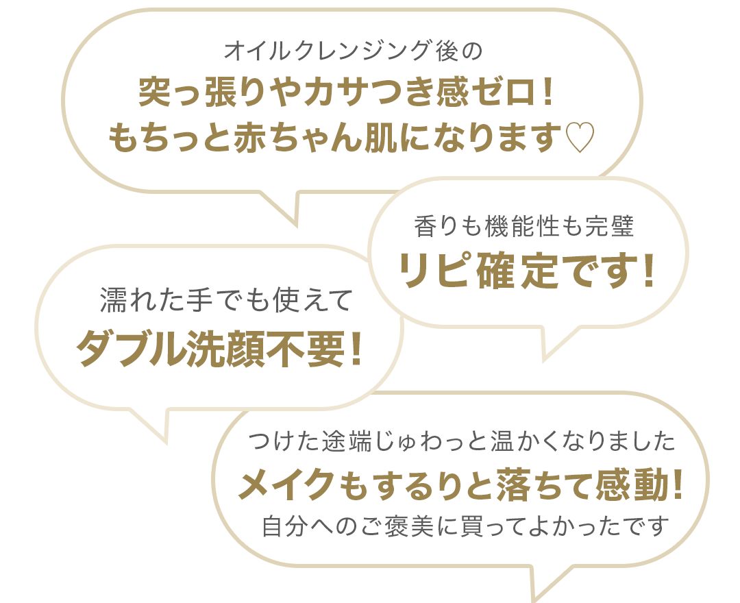 クレンジングに革命を。 はちみつのようにとろける 美容オイルクレンジング エイジングケア*1を始めたい方 するりと落ち、皮膜感・乾燥を防ぐ 毛穴の目立ちにくい*2肌へ 濡れた手・まつエクウォータープルーフOK オイルなのに乳化不要 ダブル洗顔不要 *1:年齢に応じたケア *2:潤いを与える HACCIスタッフおすすめ How to use 適量を手に取り、 やさしくメイクとなじませた後 水またはぬるま湯で洗い流します。 濡れた手、浴室でも お使いいただけます。 Fragrance ハニーレモン フレッシュなレモンとピンクペッパーのトップノートに始まり、ラベンダーやジャスミンが織りなすフローラルブーケ、ラストにはキャラメルとハニーレモンの甘美な余韻が漂う香り。 Special Set >「クレンジング」カテゴリーはこちら >「メルティグレース オイルクレンジング」特集ページはこちら メルティグレース オイルクレンジング 200mL ご使用目安 約2か月 商品番号:CL28200HA ¥7,370(税込) 熨斗を希望する 不要 カートに追加する お気に入りに追加する この商品に関する問い合わせ クレンジングに革命を。 はちみつのようにとろける 美容オイルクレンジング エイジングケア*1を始めたい方 するりと落ち、皮膜感・乾燥を防ぐ 毛穴の目立ちにくい*2肌へ 濡れた手・まつエクウォータープルーフOK オイルなのに乳化不要 ダブル洗顔不要 *1:年齢に応じたケア *2:潤いを与える HACCIスタッフおすすめ How to use 適量を手に取り、 やさしくメイクとなじませた後 水またはぬるま湯で洗い流します。 濡れた手、浴室でも お使いいただけます。 Fragrance ハニーレモン フレッシュなレモンとピンクペッパーのトップノートに始まり、ラベンダーやジャスミンが織りなすフローラルブーケ、ラストにはキャラメルとハニーレモンの甘美な余韻が漂う香り。 Special Set >「クレンジング」カテゴリーはこちら >「メルティグレース オイルクレンジング」特集ページはこちら 数量 商品説明 成分・内容量 内容量:200mL成分:パルミチン酸エチルヘキシル、グリセリン、ジオレイン酸ポリグリセリル-10、ジカプリン酸ポリグリセリル-6、ハチミツ、水、トコフェロール、カラメル、ぺンテト酸5Na、コメヌカ油、サフラワー油、カニナバラ果実油、ホホバ種子油、フィチン酸、酸化銀、オプンチアフィクスインジカ果実エキス、ジパルミチン酸アスコルビル、香料 ご使用上の注意点 ・お肌に異常が生じていないかよく注意して使用してください。化粧品がお肌にあわないとき、即ち次のような場合には、使用を中止してください。そのまま化粧品類の使用を続けますと、症状を悪化させることがありますので、皮膚科専門医等にご相談されることをおすすめします。(1)使用中、赤味・はれ・かゆみ・刺激・色抜け(白斑等)や黒ずみ等の異常があらわれた場合。(2)使用したお肌に、直射日光があたって上記のような異常があらわれた場合。・傷やはれもの、しっしん等、異常のある部位にはお使いにならないでください。・目に入った場合は、すぐに水かぬるま湯で洗い流してください。・目に異物感が残る場合は、眼科医へご相談ください。・直射日光のあたる場所、極端に高温・低温の場所を避け、乳幼児の手の届かない所に保管してください。・天然由来成分配合のため、色や香り、液性に変化が生じ、沈澱が発生することがありますが、ご使用に問題はありません。・火気にご注意ください。 よくある質問 関連商品 【公式オンライン限定】メルティグレースセット ¥16,390 「定期商品一覧」はこちら 【メールやLINEで気軽にプレゼント】 贈るお相手の住所を知らなくても、 メールやLINEなどのSNSで気軽に ギフトを贈ることができます。 詳しく見る 閲覧履歴 カートに追加する オプションを選択する
